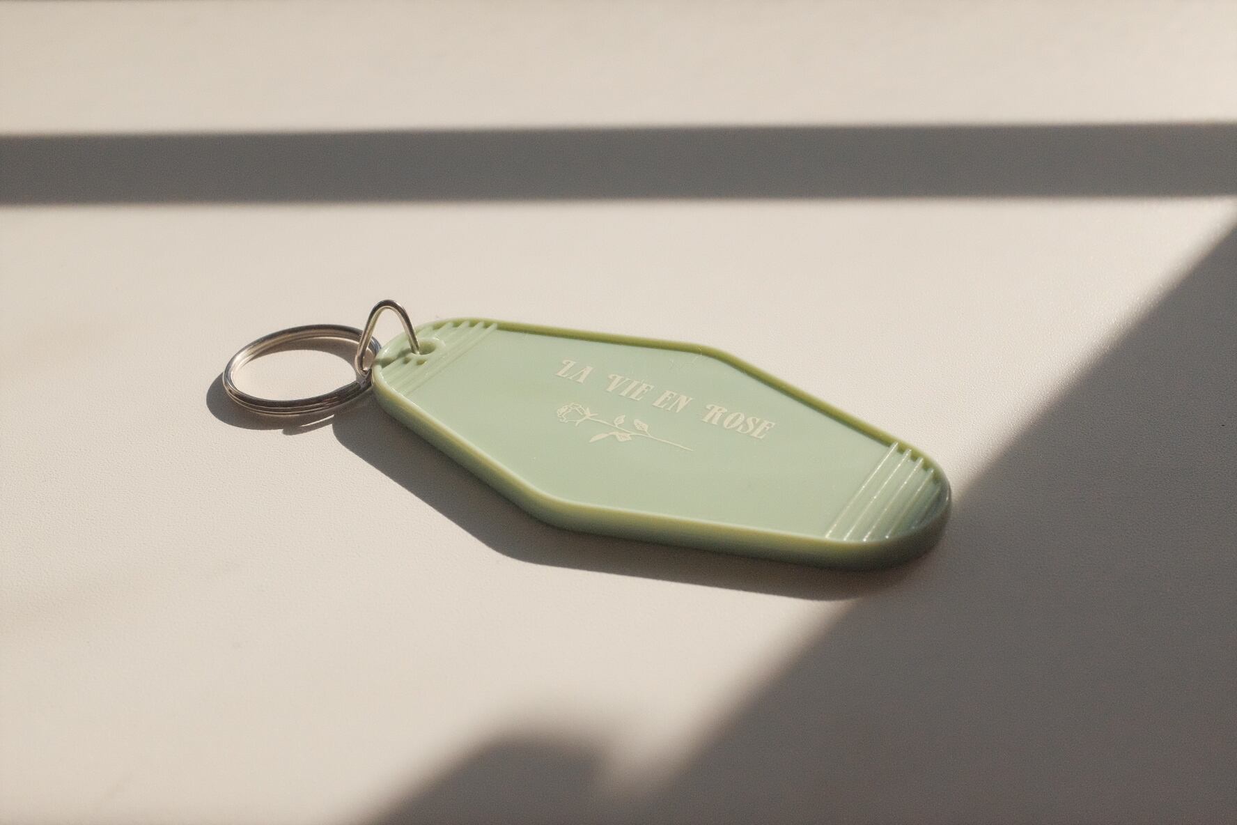 アメリカのビンテージモーテルで使用されるキータグの材質まで忠実に再現し、表面にはブランドロゴ、そして裏面にメッセージ”LA VIE EN ROSE”(薔薇色の人生)とKENNYが書き下ろした薔薇のイラストをプリント。